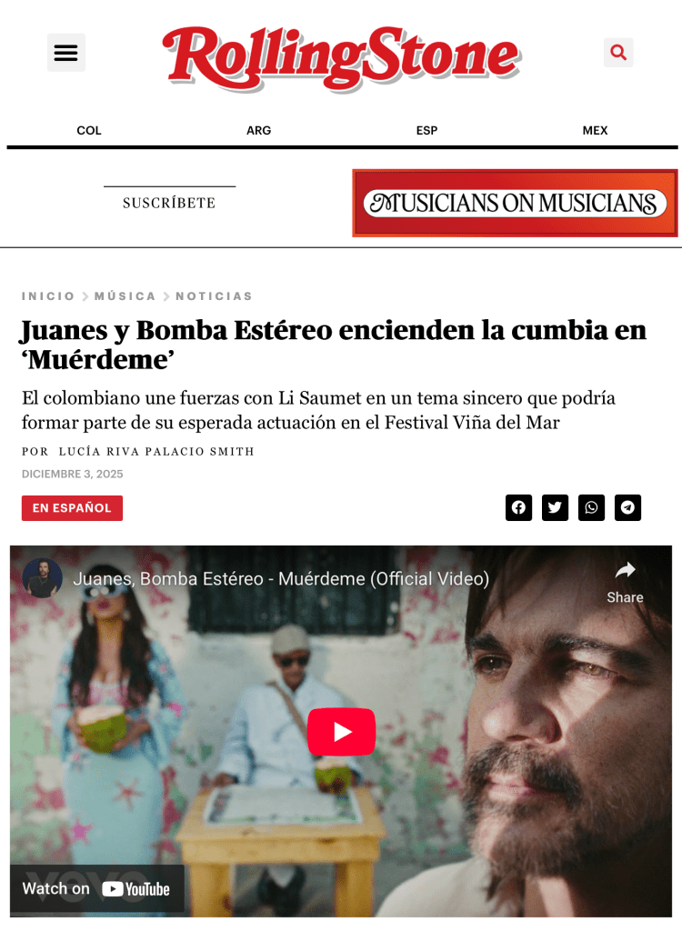 Juanes, Bomba Estéreo – Muérdeme (Official Video)